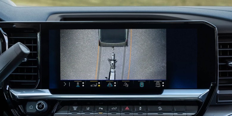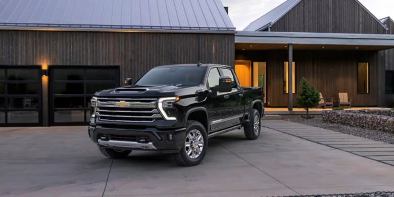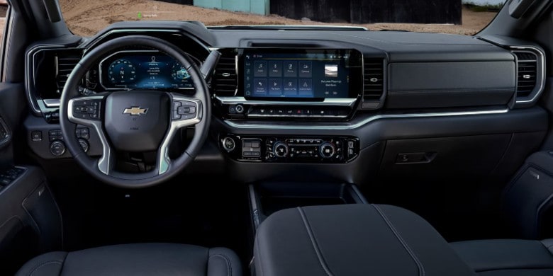 The 2500HD features a 13.4-inch touchscreen with Google Built-In integration for enhanced navigation and voice commands. Standard wireless Apple CarPlay and Android Auto provide seamless connectivity. Safety tech includes adaptive cruise control, lane keeping assistance, and blind-spot monitoring. The available 13-camera surround-view system aids maneuvering, while innovative trailer-view technology virtually removes trailers from driver sight.
